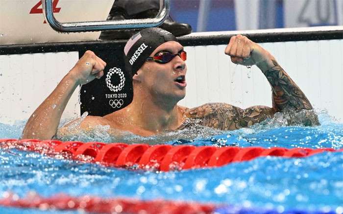 Пловец Калеб Дрессел после завоевания 5-й золотой медали на Олимпийских играх в Токио