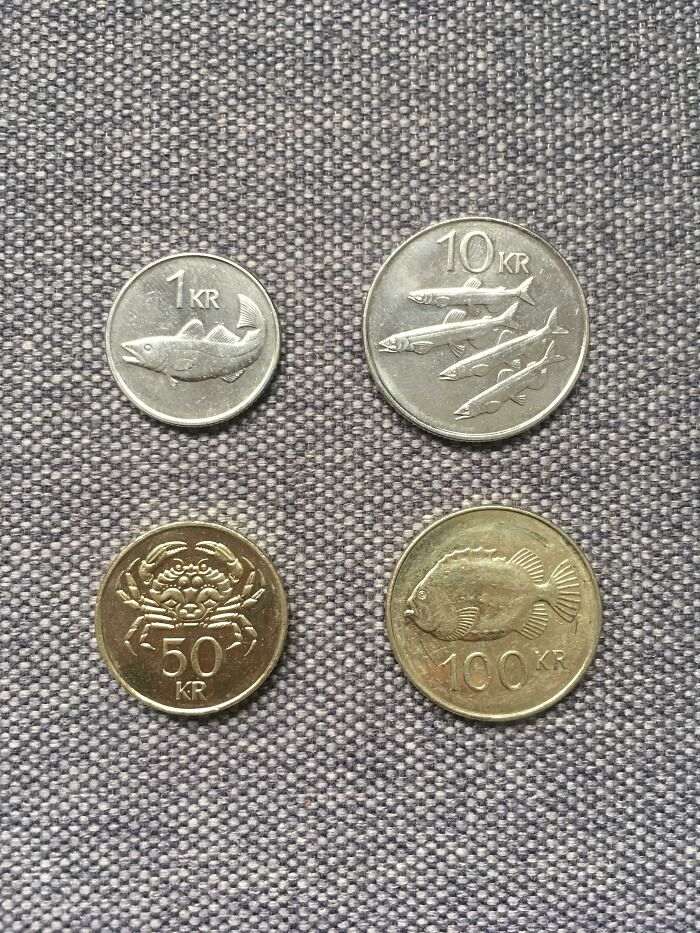 На монетах исландской кроны выгравированы важные для островитян виды обитателей океана