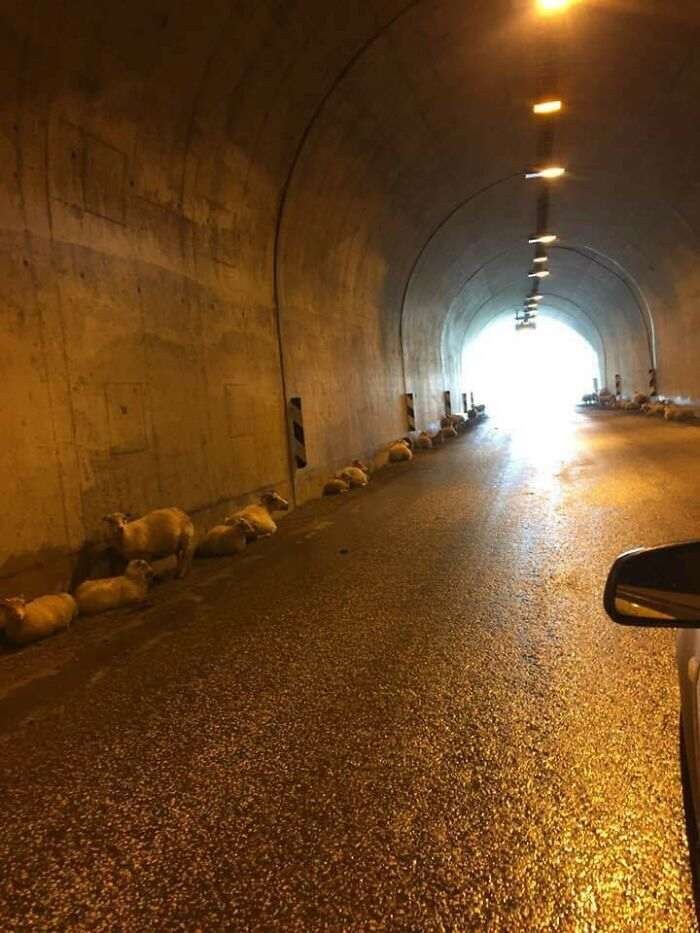 Исландские туннели часто выступают укрытиями для овец во время сильного шторма