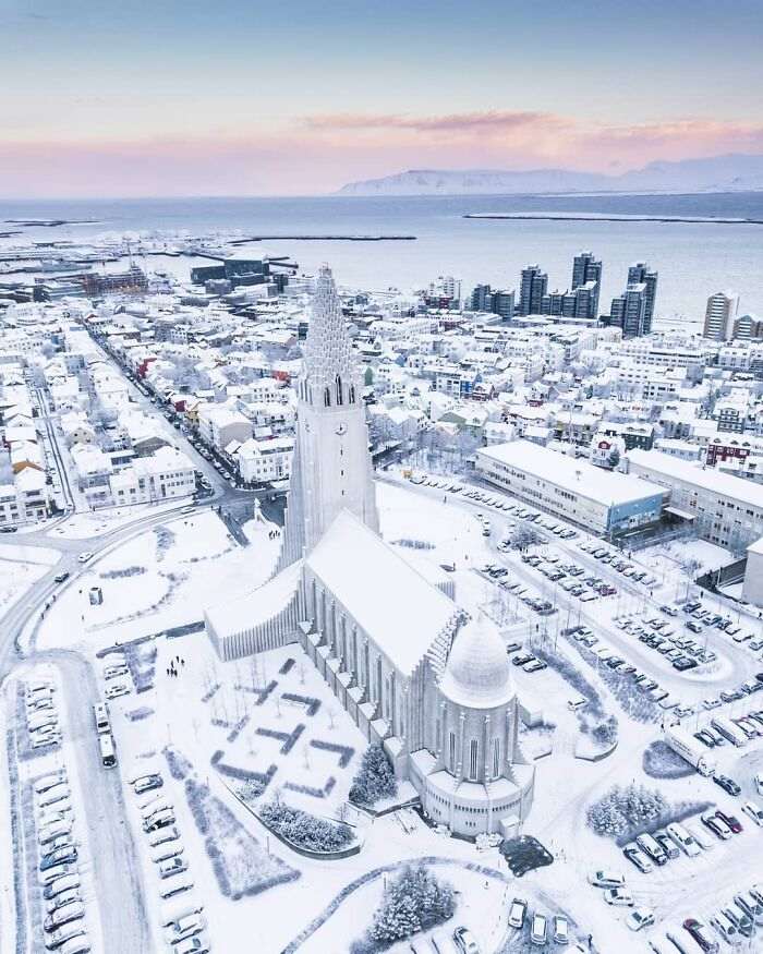 Рейкьявик сказочно выглядит после метели