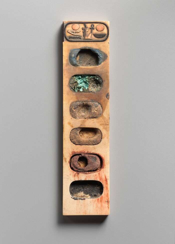 Палитра для красок возрастом 3400 лет. Принадлежала живописцу из Древнего Египта, эпоха Аменхотепа III