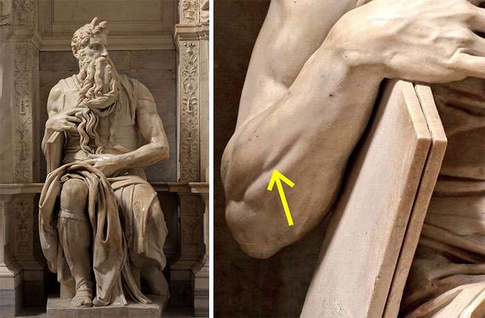 Мраморная скульптура Моисея сделана в 1513–1515 годах. Микеланджело позаботился даже о такой мелкой детали как мышца, напрягающаяся при поднятии мизинца