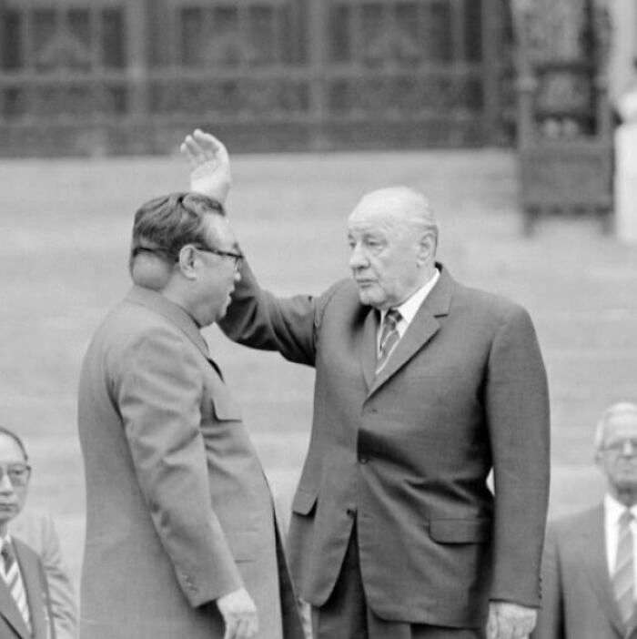 У основателя из Северной Кореи Ким Ир Сена была опухоль размером с бейсбольный мяч на затылке. Все фотографии северокорейских пропагандистов были сделаны с левой стороны. Это один из немногих правдивых снимков «вождя»