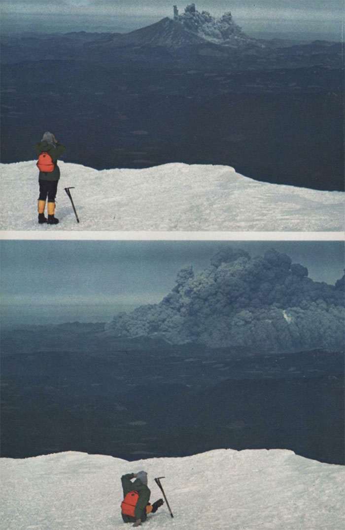 Фотография туриста, наблюдающего за извержением вулкана Сент-Хеленс
