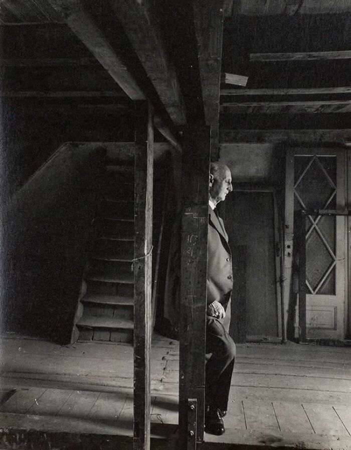 Отец Анны Франк, Отто, возвращается на чердак, где некогда вместе с семьей прятался от нацистов, 1960 год. Никто, кроме него, встречу с немцами не пережил.