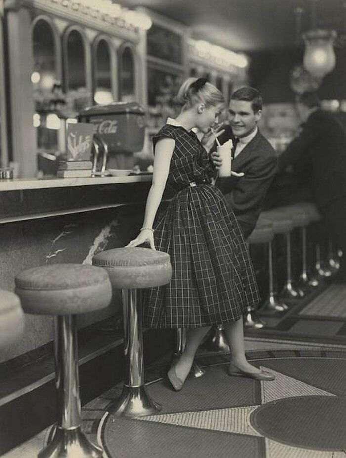 Свидание юных американцев в закусочной, 1950 год.