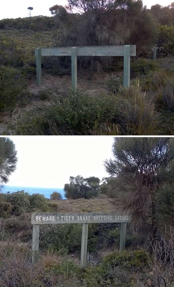 Знак, предупреждающий о том, что на этой территории размножаются змеи и тигры