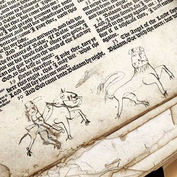 Забавный рисунок из 17 века, найденный в восстановленной Библии