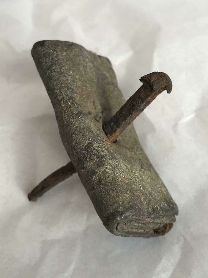 Табличка с проклятиями – древнегреческий или римский сувенир. У этого внутри волосы, наверняка с любовным заговором