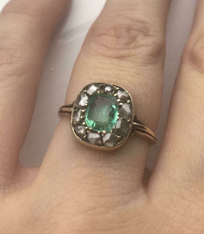 Грузинское золотое кольцо с изумрудом и бриллиантом 18 карат