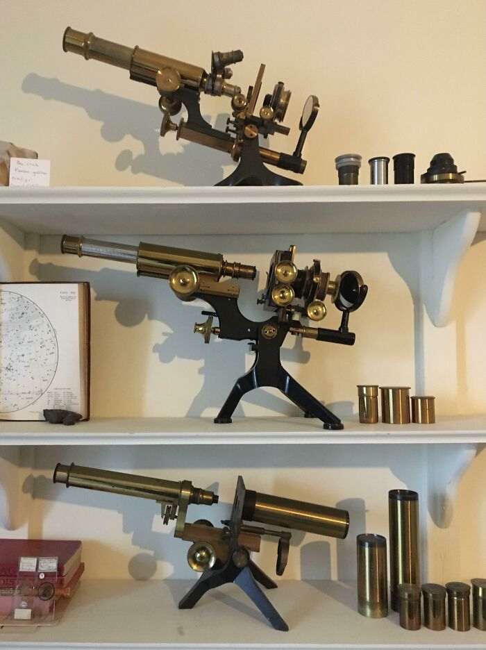 Три английских микроскопа начала ХХ века. Практической пользы нет, но выглядят впечатляюще