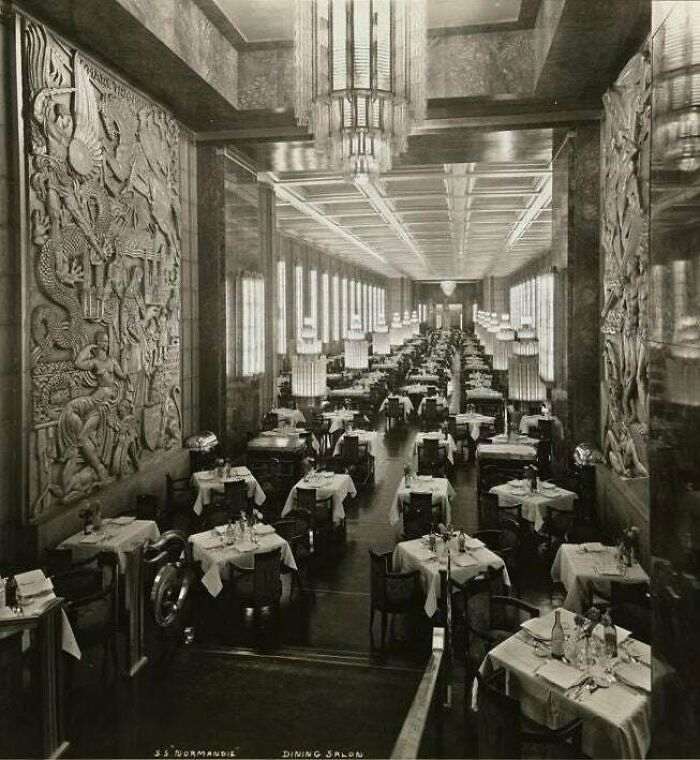 Интерьер ресторана на корабле Нормандия (1935-1942 гг). Разрушен в результате случайного пожара