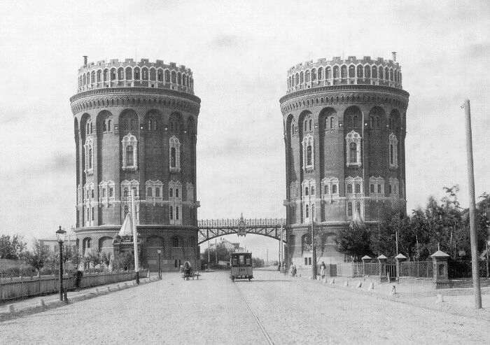 Крестовские водонапорные башни, Москва. Построены в конце 19 века, снесены в 1939-м для расширения автострады