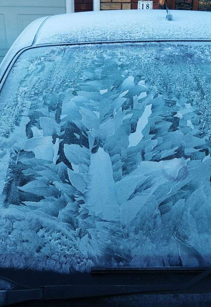 Потрясающий морозный узор на лобовом стекле автомобиля