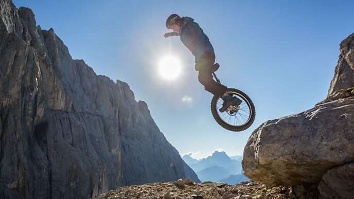 Действительно экстремальный вид спорта. В горах сохранить равновесие бывает непросто и с кучей снаряжения, крепка держась за поверхность, но есть чудаки, которым задачу захотелось усложнить, и они путешествуют по горным тропам на одноколесном велосипеде. Этот вид спорта требует невероятной подготовки, феноменального чувства равновесия и готовности терпеть тяжелые травмы во время тренировок, но на удивление с каждым годом поклонников такого времяпрепровождения становится все больше.