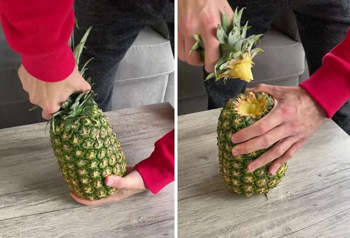 Для этого способа вам понадобится один спелый ананас. Именно спелый, потому что с недозревшим фруктом, скорее всего, ничего не получится. Для начала нужно безжалостно отвернуть ананасу хвост, крепко обхватив его за основание и провернув по часовой стрелке.