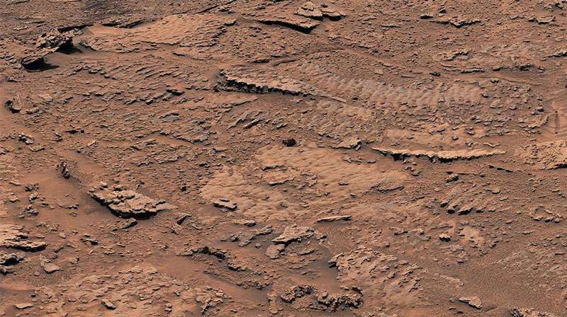 На прошлой неделе Curiosity обнаружил ритмичные образования, которые, по мнению ученых, были сформированы рябью от волн бывшего неглубокого пруда, и после выпаривания воды превратились в окаменелости. Такой же характерный рисунок вы могли видеть на дне моря, реки или озера.
