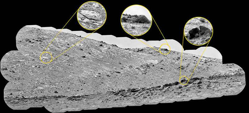 Марсоход Curiosity оснащен полным набором геологических инструментов, однако большинство своих открытий он делает с помощью фотокамер. Две предыдущие попытки бурения вообще потерпели неудачу из-за сложности проникновения в породу. Но вскоре должны появиться новые доказательства существования марсианской воды. В этом году Curiosity изучит остатки оползней на склонах горы Шарп, характер которых однозначно говорит о сходах по влажной породе, а не о процессах естественного разрушения из-за гравитации или тектоники.