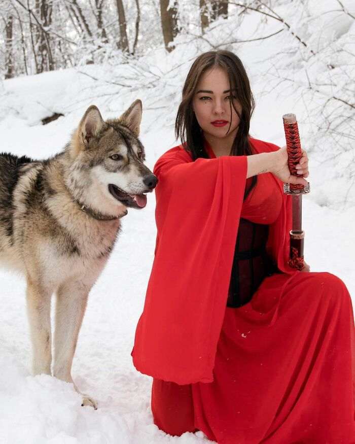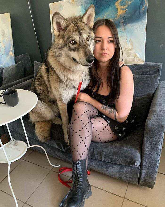 Предлагаем вам полюбоваться на подборку фотографий с очаровательной домашней волчицей из Уфы и ее не менее очаровательной хозяйкой.