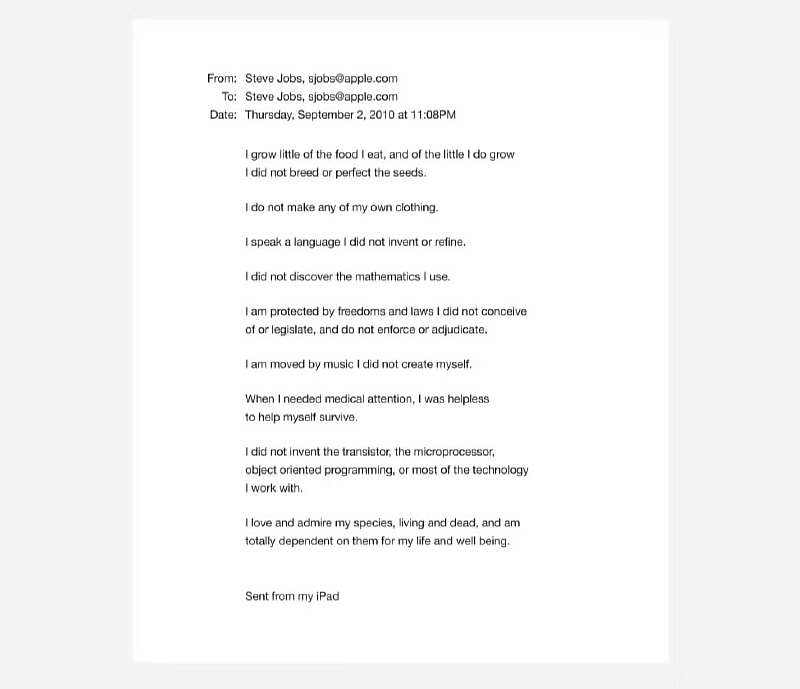 Это письмо дает нам более глубокое понимание мышления одного из самых влиятельных лидеров 21-го века. Даже такой гениальный человек понимал, что его успех был бы невозможен без сотрудничества и поддержки других людей.