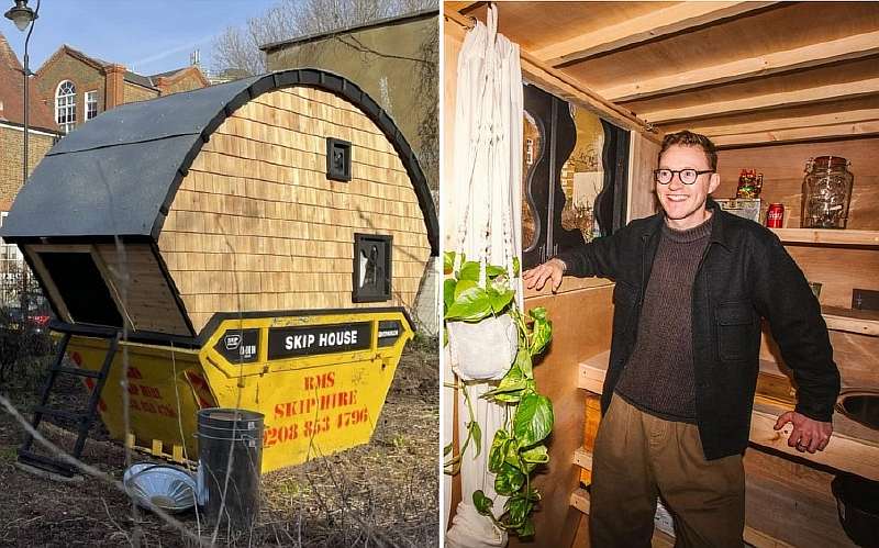 28-летний Харрисон Маршалл считает, что цены на недвижимость в Великобритании взлетели до небес. Чтобы придать огласке абсурдность сложившейся ситуации, мужчина потратил 4000 фунтов стерлингов и превратил мусорный контейнер в почти полноценный дом, который назвал Skip House.