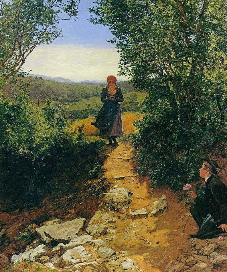 Действительно, при беглом взгляде на женщину, которая смотрит вниз на сложенные руки, легко предположить, что она держит в них телефон. Но поскольку рисунок был создан в 1860 году, таких устройств в то время просто не существовало. Да и вряд ли его автор, австрийский художник Фердинанд Георг Вальдмюллер, смог предсказать будущее со 100% точностью.