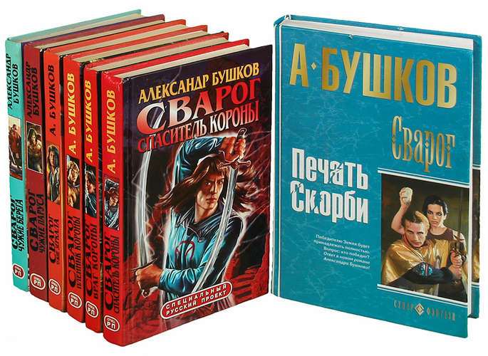 Топ книг российской фантастики продолжает еще одна долгоиграющая серия о военном, который переносится в иной мир. Творения Александра Бушкова отличает наличие добротного, пусть и местами плосковатого юмора, так что скучать, наблюдая за приключениями майора Сварога в мире магов и колдовства не приходится. Первые книги серии выполнены на высоком уровне — вполне качественный русский язык выделяет Бушков из бесконечной плеяды косноязычных отечественных фантастов.