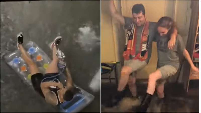 Несмотря на разрушительные последствия, американцы пытаются не падать духом, а некоторые даже нашли в стихии повод порадоваться. Например — почиллить на матрасе с кальяном, проплывая прямо по улице, или станцевать в своем доме, стоя почти по колено в грязной воде: