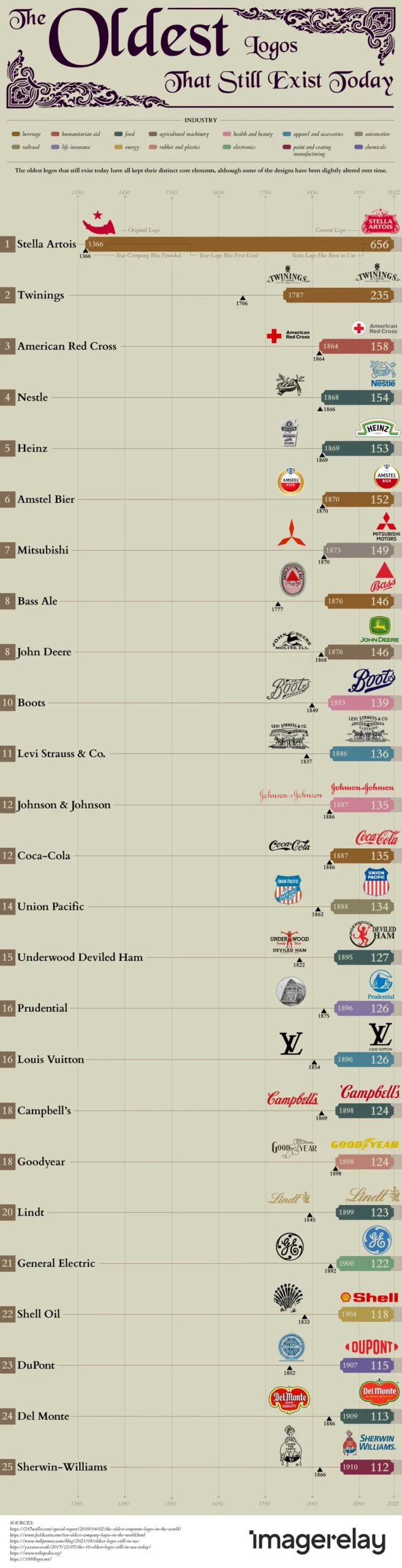 Полный список с 25 старейшими логотипами вы можете увидеть на картинке ниже: