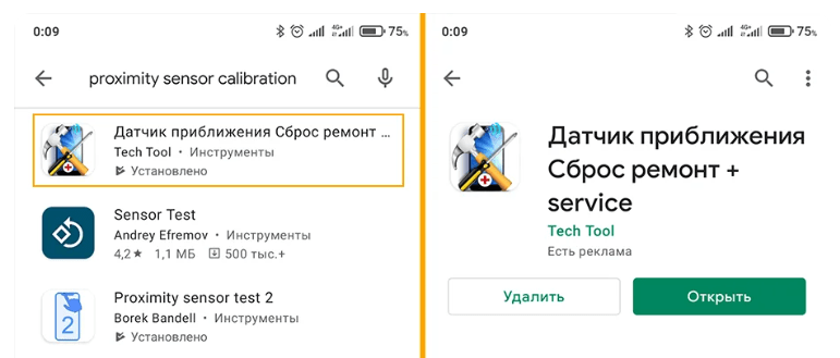 Для этого прямо в системном меню предусмотрена опция Calibration, которая автоматически настраивает датчик по нажатию одной кнопки, но помогает она далеко не всегда. Лучше использовать специальное приложение из Play Market — Датчик приближения Сброс ремонт (или Proximity Sensor Callibration). Устанавливаем, запускаем, нажимаем кнопку Fix it и следуем инструкции. После завершения ручной калибровки перезагружаем смартфон и повторяем тест — теперь все должно работать нормально.