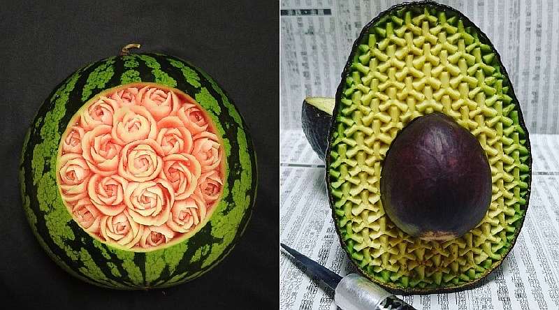 Делать произведения искусства можно не только рисуя на холсте бумаги или создавая скульптуры. В Японии существует целое направление под названием мукимоно — или вырезание узоров на кожуре фруктов и овощей.
