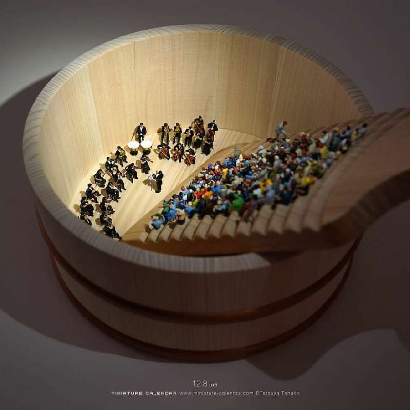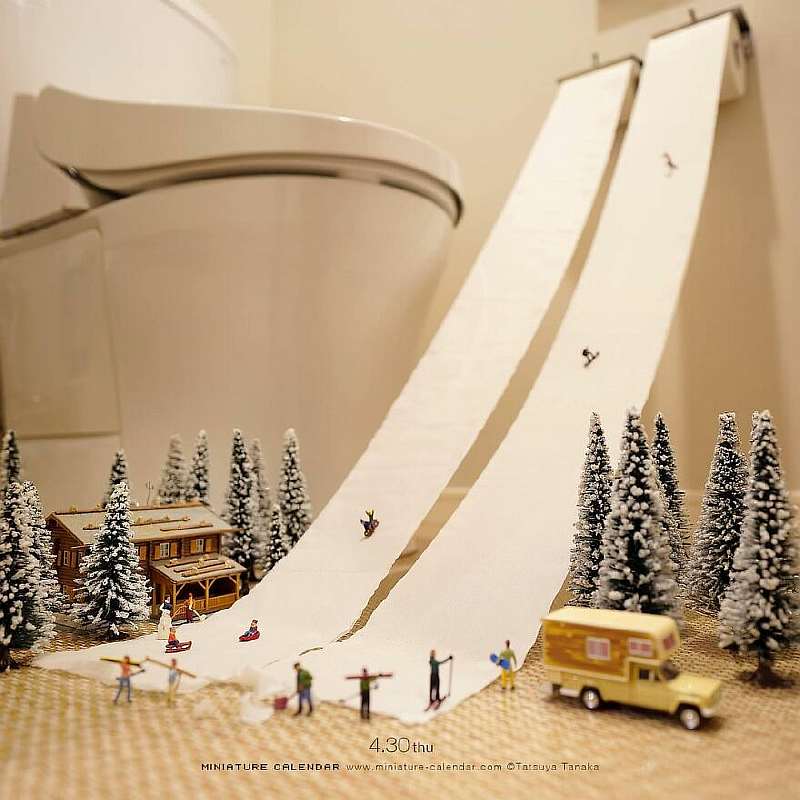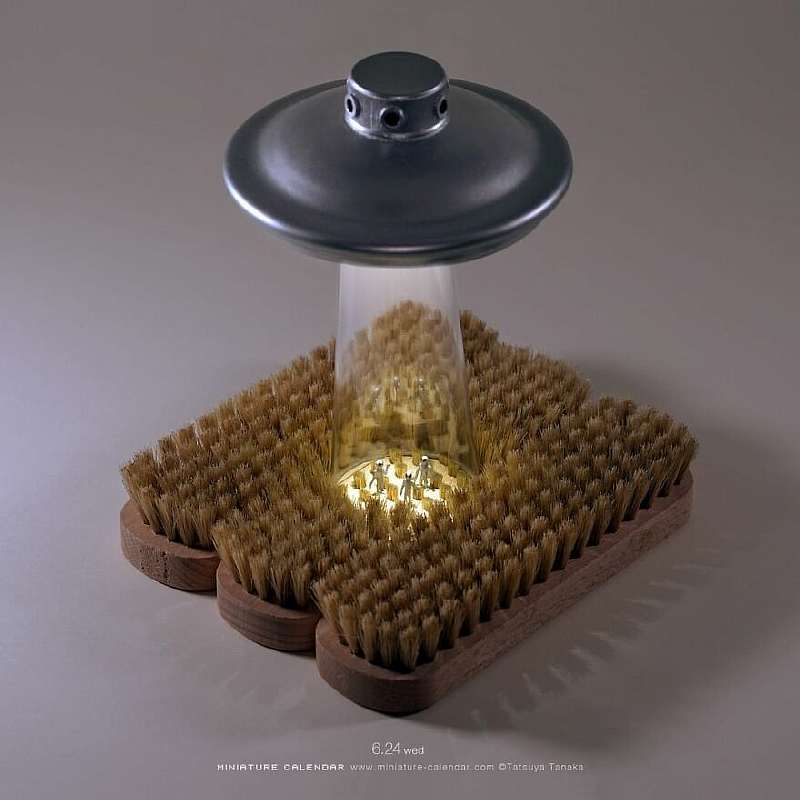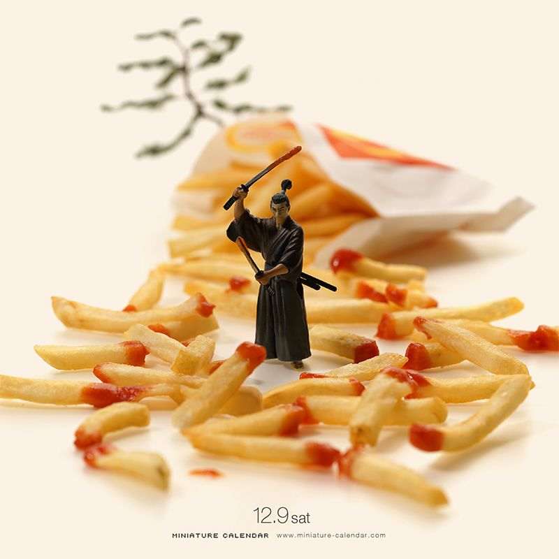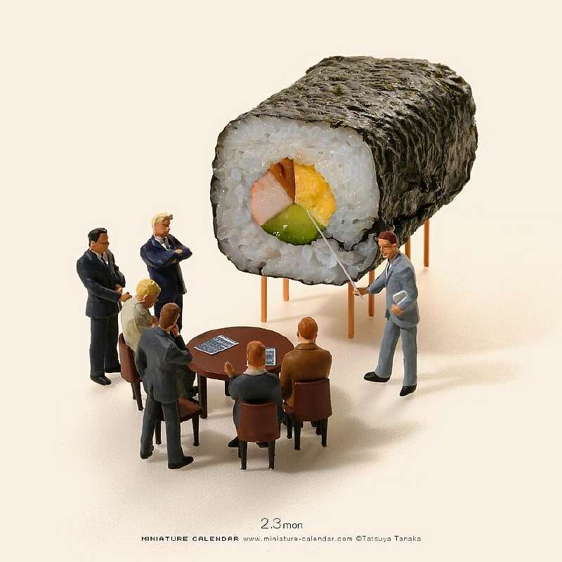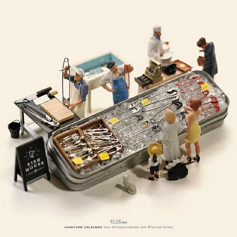 На протяжении семи лет он каждый день создает миниатюрные инсталляции, в которых крошечные человечки взаимодействуют с объектами из «большого» мира. Художник явно не страдает от недостатка креатива и придумал кучу забавных сценариев, легко поднимающих настроение. Предлагаем вам оценить шедевральные миниатюры Тацуи.