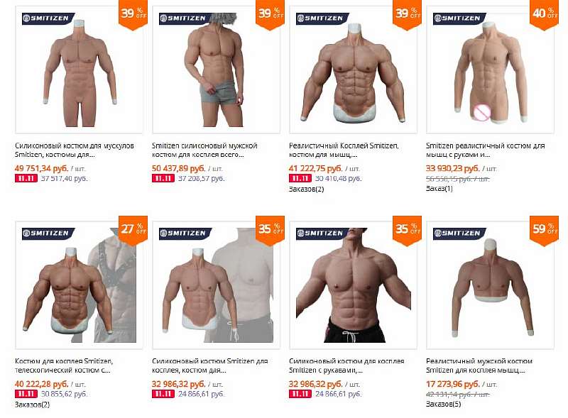 Продукция китайской компании Smitizen, которую уже активно продают на AliExpress, позволяет даже самому ленивому любителю газировки и чипсов выглядеть как Арни в свои лучшие годы. Силиконовый костюм с анатомически верным мышечным корсетом и выступающими венами даже без одежды трудно отличить от реальной мускулатуры. На некоторых моделях присутствуют даже искусственные волосы, если гладкие образцы кому-то кажутся недостаточно тестостероновыми.