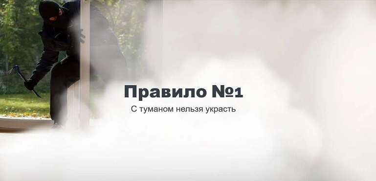 Нормально ориентироваться в таких условиях просто невозможно, а рассеивается туман лишь через 20 минут. За это время на вой сигнализации уже успеют приехать охранники. И незадачливым ворам не остается ничего другого, как им сдаться. В лучшем случае – как-то умудриться покинуть место преступления с пустыми руками.