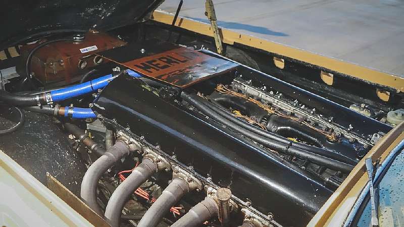 Двигатель Rolls-Royce Mk35 Merlin V12 мощностью 27 литров. Тот же, что использовался в истребителях Supermarine Spitfire и Hawker Hurricane, когда-то был установлен в… легковом автомобиле. Проект под названием Beast («Зверь») придумал и реализовал в 1970-х годах британец Джон Додд. В 1977 году он побил действующий рекорд скорости, разогнавшись до 294.5 км/ч. Теперь эту машину можно купить на аукционе.