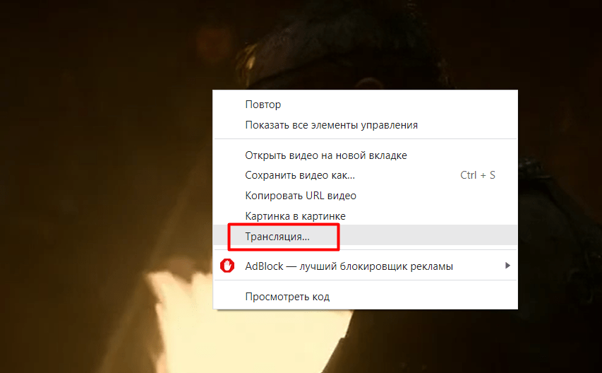 Чтобы запустить трансляцию — нажмите ПКМ в любом месте нужной вкладки, выбирите «Трансляция», и укажите, куда именно транслировать содержимое.