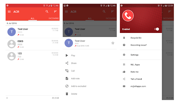 Приложение позволяет сделать так, чтобы все звонки на определенный номер записывались автоматически или же наоборот — игнорировались. Есть функция выбора записи речи обеих сторон, или какого-то конкретного собеседника. Получившиеся аудиофайлы можно быстро отправлять по электронной почте или с помощью мессенджеров нажатием одной кнопки в программе.