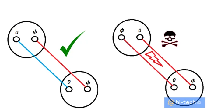 - Фаза совпала с фазой, ноль — с нулём. Тогда ничего не произойдёт. Вы просто добавили лишний кусок провода в сеть. Ток течёт как обычно. Это единственный безопасный вариант, но угадать его — как выиграть в лотерею.