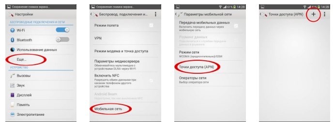 Перейдите в “Настройки” > “Ещё” > “Мобильная сеть” > “Имя точки доступа (APN)”. На более новых версиях ОС Android вместо «Еще» может быть пункт «Сеть и интернет», но суть не меняется.