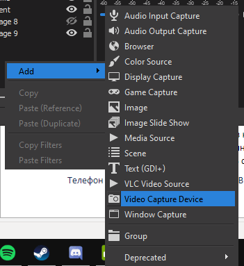 Чтобы установить DroidCam в качестве вебки в OBS для стрима, зайдите в приложение, кликните на нужную сцену и в поле источники выберите добавить новое устройство видеозахвата. Все, что осталось сделать — выбрать из списка DroidCam.