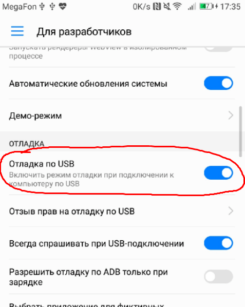 - Первое, что нужно сделать — включить режим отладки телефона по USB в настройках для разработчиков. После этого подключите смартфон к ПК.