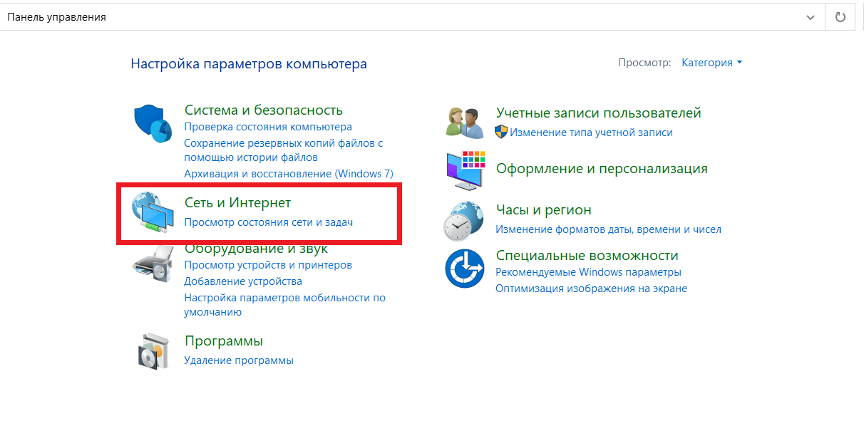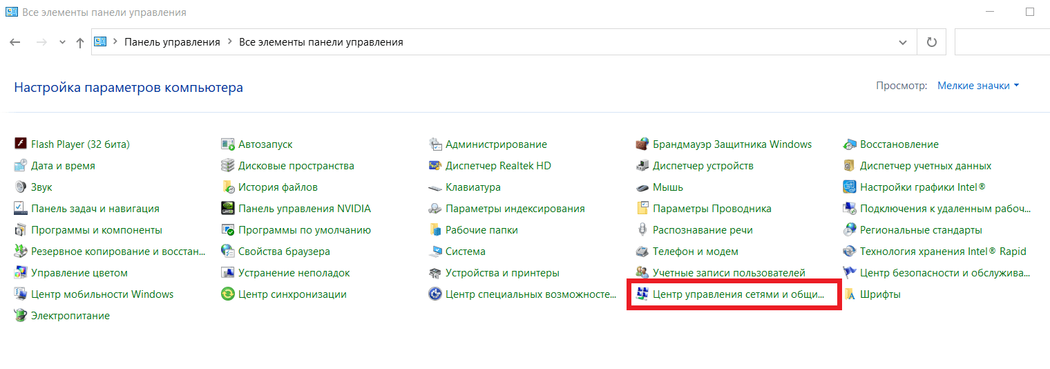 - У «Панели управления» есть несколько версий отображения: значки (крупные или мелкие) и категории. В первом случае вам нужен раздел «Центр управления сетями и общим доступом». Во втором придется пройти по чуть более длинному пути: «Сети и интернет» > «Центр управления сетями и общим доступом».