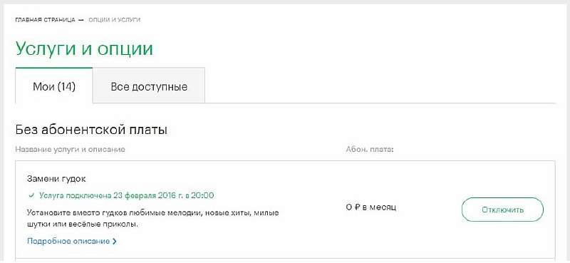 - В списке подключенных функций найдите “Замени гудок” или «Персональный гудок» и нажмите отключить.
