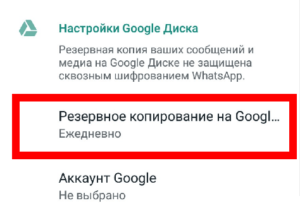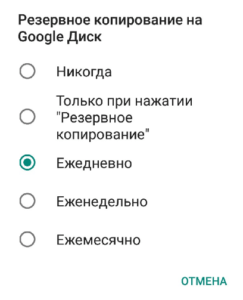 - Теперь вы сможете вручную создать резервную копию сообщений на Гугл Диске или же сделать так, чтобы процесс осуществлялся автоматически. Например, каждый день.