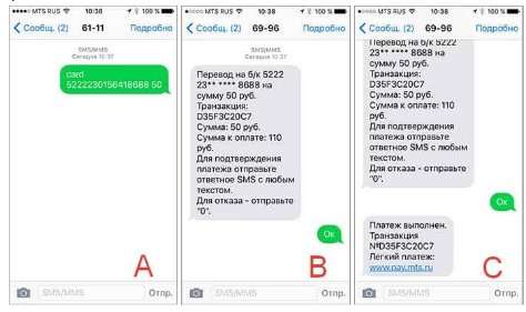 - Отправьте СМС на номер 6111, которое содержит внутри себя слово CARD, номер карты и сумму трансфера. Пример — CARD 4216720044442222 50