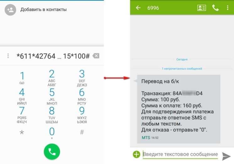 Например *611*123456789*100#. Далее вам придет СМС с просьбой подтвердить транзакцию, на которое нужно ответить любым текстом, кроме цифры 0.