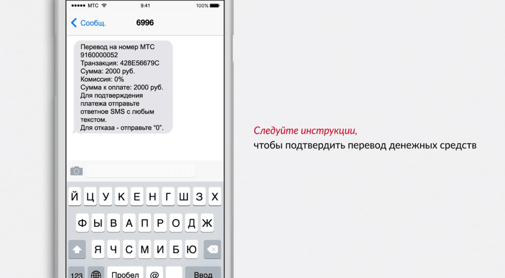 - Вслед за этим вы получите сообщение, которое потребует ваше согласие на выполнение трансфера, дать его можно отправив в ответ СМС с любым содержанием, кроме числа 0.
