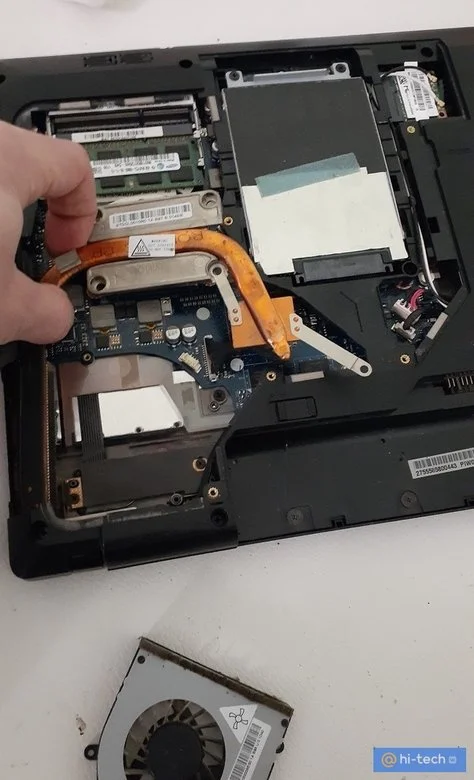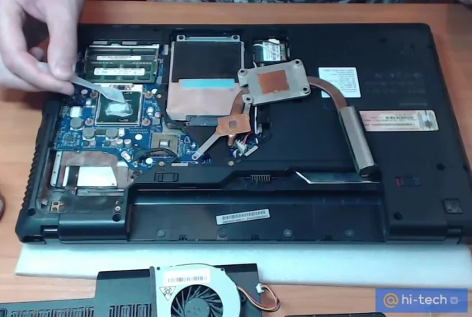 Предупреждение: у разных моделей ноутбуков доступ к системе охлаждения устроен по-разному. На некоторых (особенно тонких ультрабуках) нужно снимать чуть ли не всю материнскую плату. Если у вас такой — лучше отнести в сервис. Но на 80% обычных ноутбуков достаточно снять нижнюю крышку.