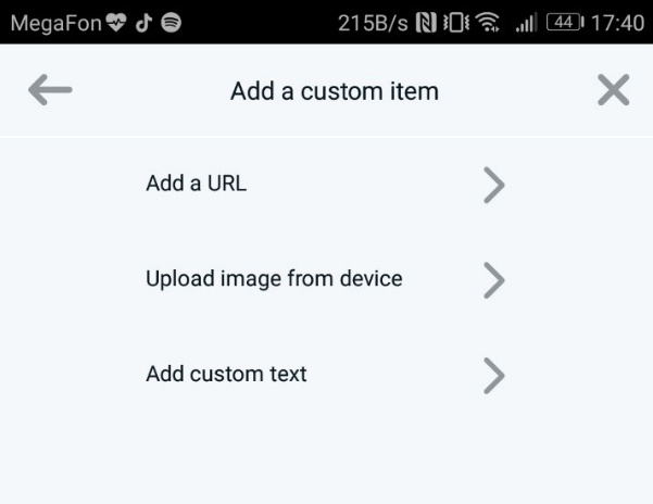 Из остальных слоев интересен только Add a custom item, позволяющий вывести на экран текст, контент с определенного сайта (например, картинку) или же изображение, хранящееся на вашем устройстве.