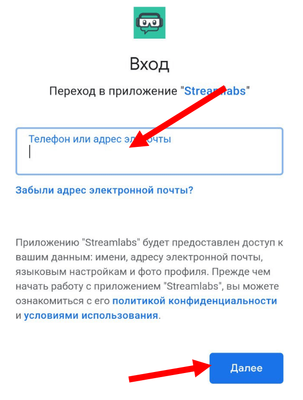 - Вводим почту канала и пароль от него, даем StreamLabs все нужные разрешения.